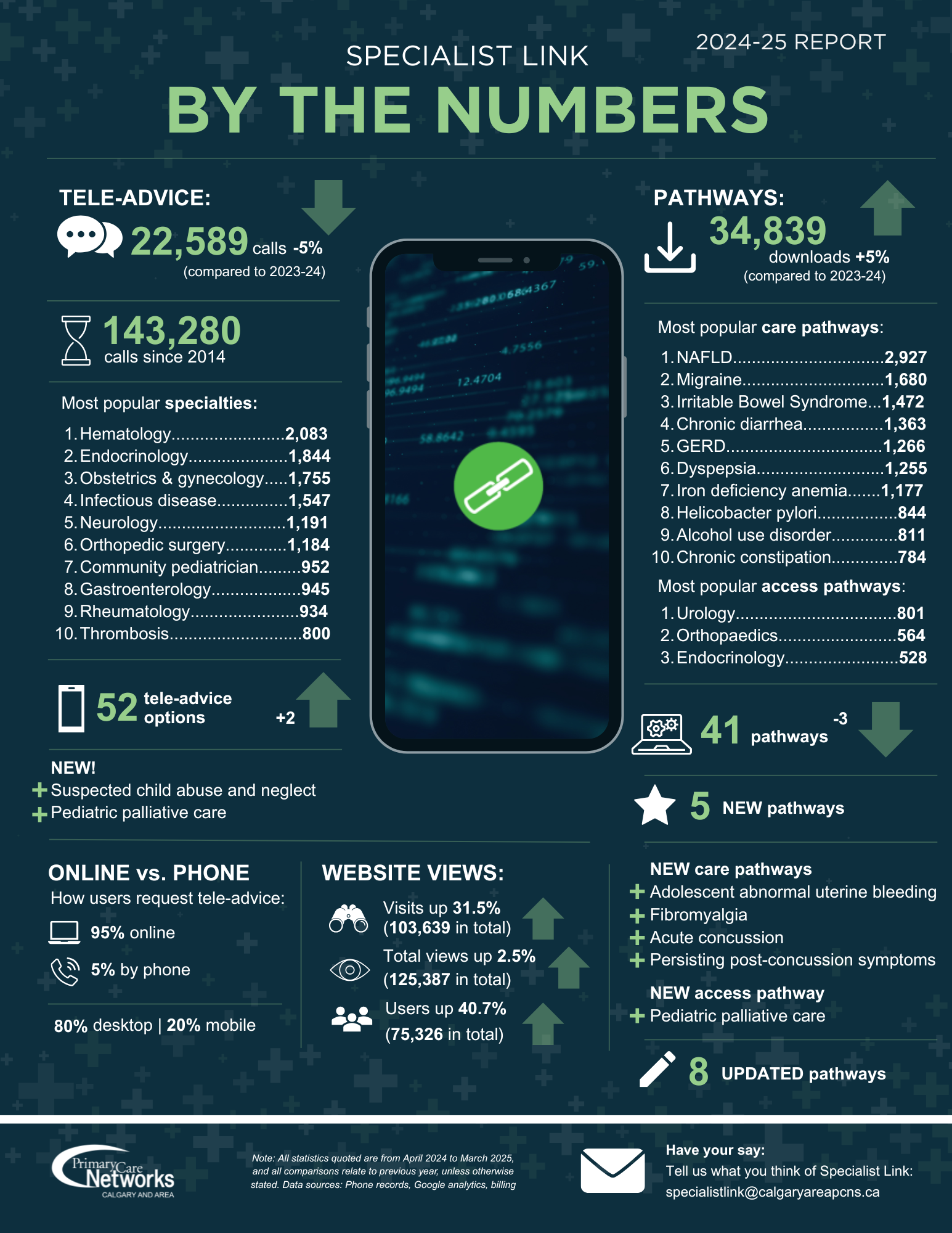 More than 22,000 tele-advice calls were logged in 2024-25 as Specialist Link continued to provide access to real-time advice from specialists and specialty groups.
